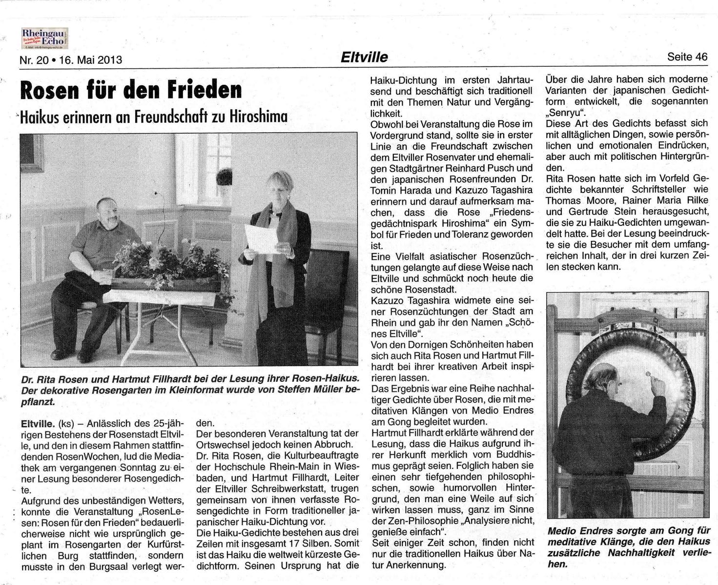 Lesung von Rosenhaiku im Rahmen der Eltviller Rosentage mit Dr. Rita Rosen